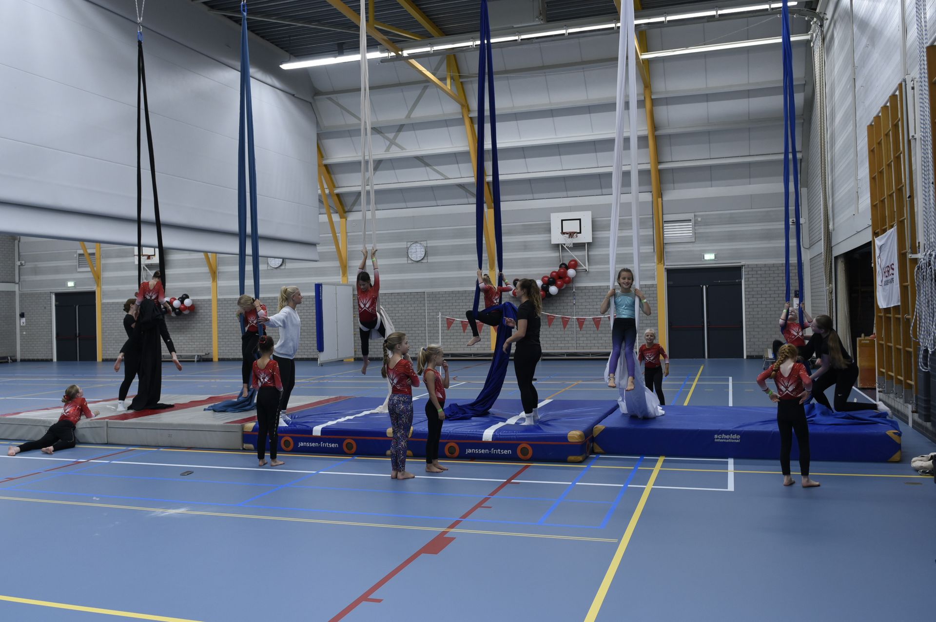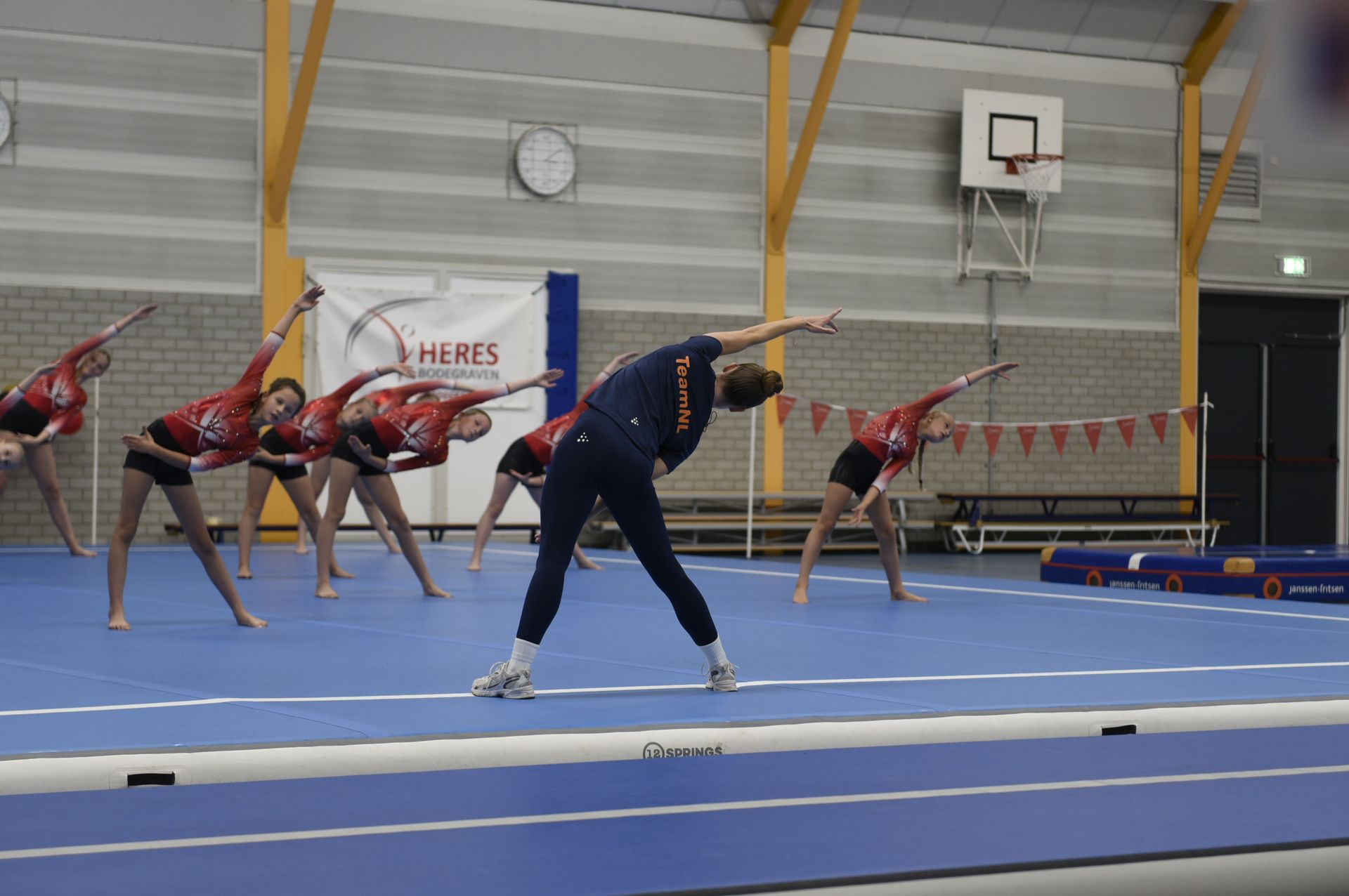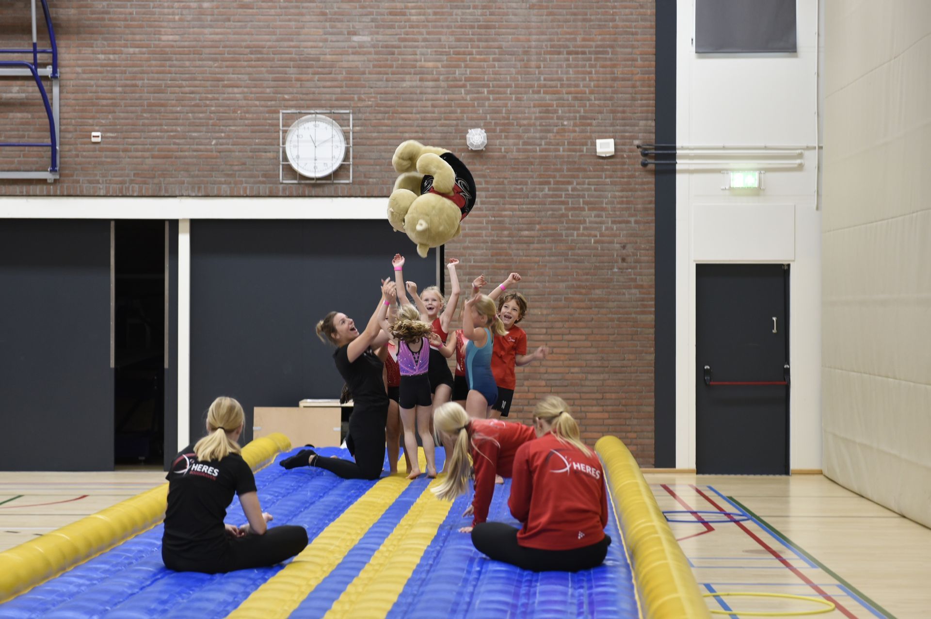 GESLAAGDE JUBILEUMVIERING Zaterdag 27 september gingen we verder met de viering van ons 35 jarig bestaan, het was een prachtig feestje met diverse gasttrainers. Onze Heres trainers en gasttrainers gaven diverse workshops: doekacrobatiek, acro , cheerleading, tumblingbaan- en trampoline springen en de gymtuin. Ook op deze tweede dag van onze jubileumviering hadden we een bijzondere gast uitgenodigd : Olga Commandeur , die sinds 2000 met haar tv programma " Nederland in Beweging" jarenlang heel Nederland letterlijk van de bank kreeg, kwam nu Heres in beweging brengen met haar workshop vitaliteit vol energie en inspiratie. Wat hebben we genoten van deze dag. Meer foto's komen zsm in het fotoboek op de site.